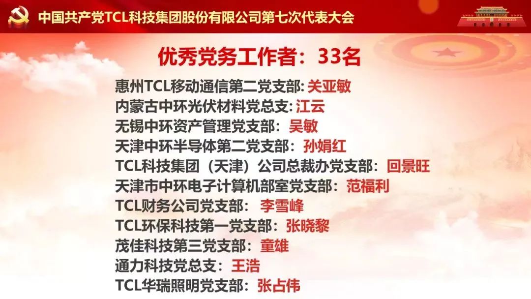 為慶祝七一,表彰先進,經(jīng)TCL科技(天津)公司黨委研究,對先進基層黨組織、優(yōu)秀黨務(wù)工者和優(yōu)秀共產(chǎn)黨員予以表彰。