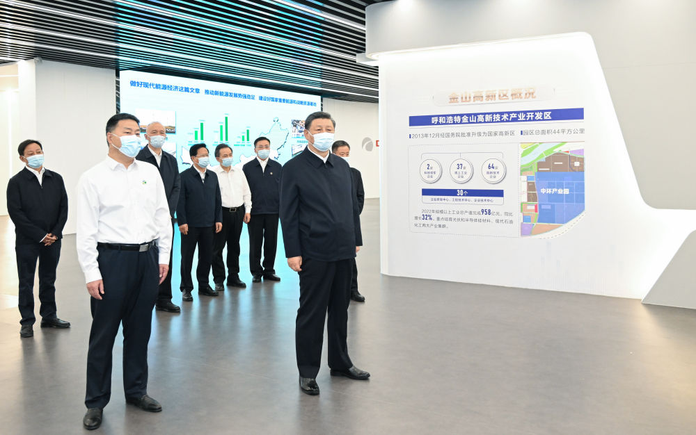 6月7日至8日,中共中央總書記、國家主席、中央軍委主席習(xí)近平在內(nèi)蒙古考察。這是7日下午,習(xí)近平在呼和浩特中環(huán)產(chǎn)業(yè)園考察。新華社記者 謝環(huán)馳 攝